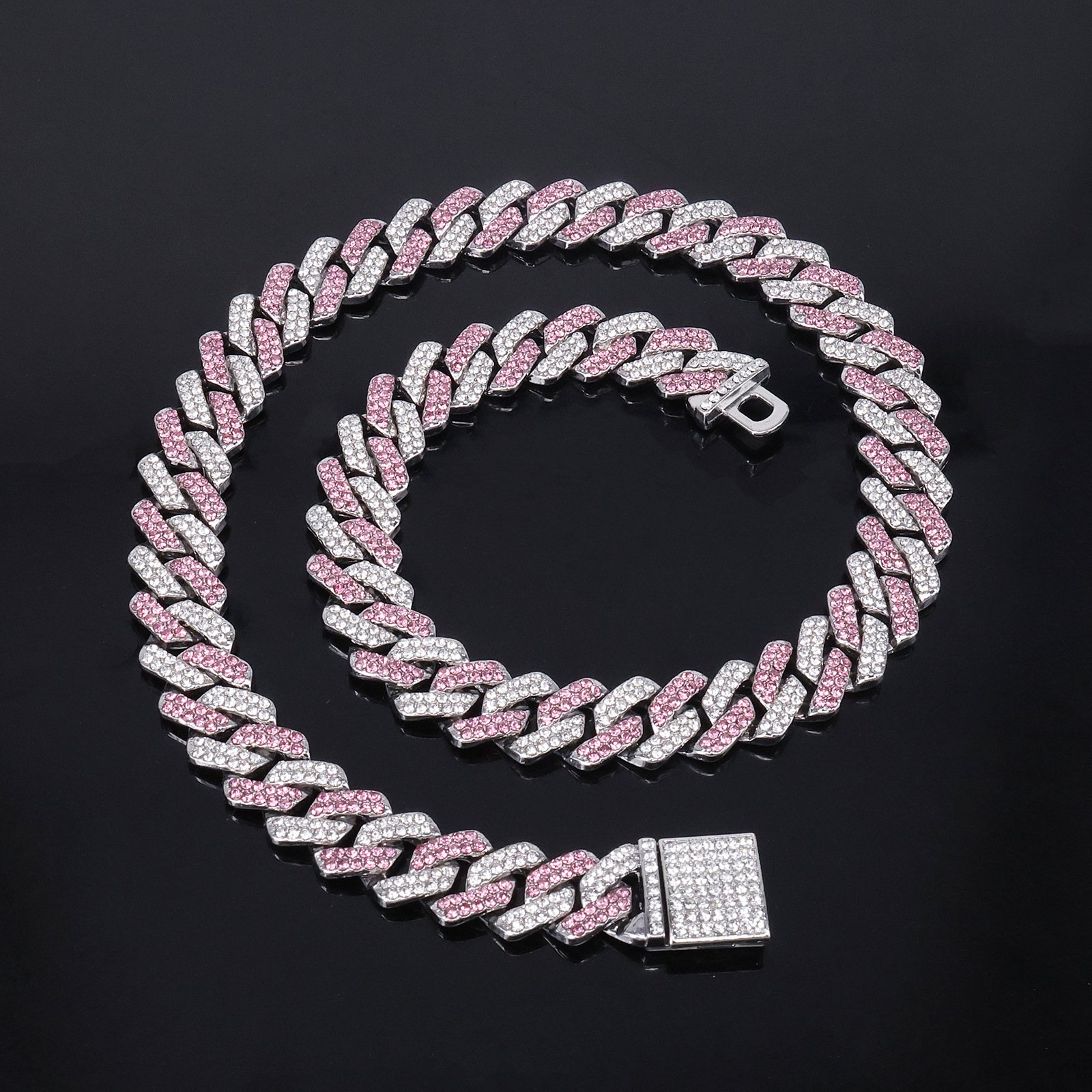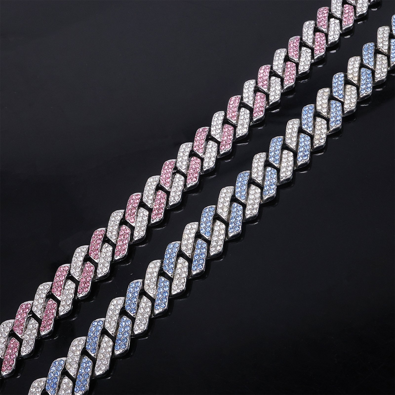 Color: Silver base with pink and white diamonds, silver base with blue and white diamonds